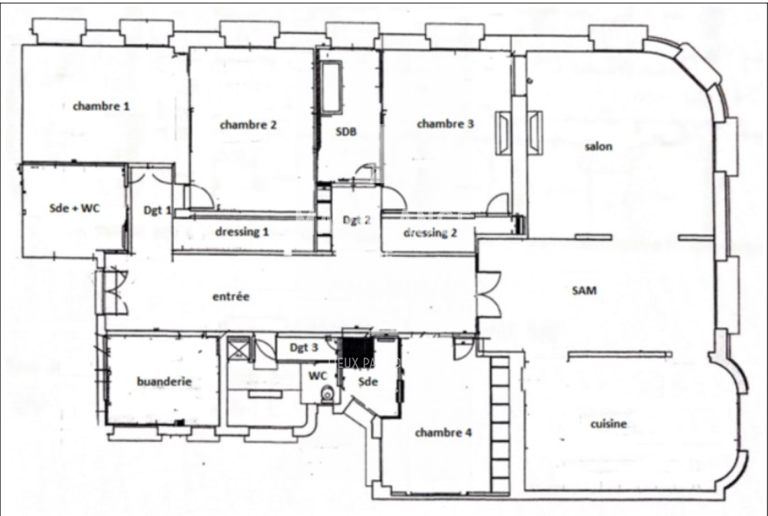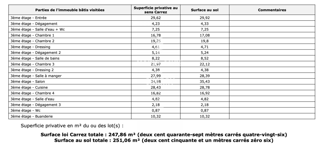 Au calme dans une voie privée, cet appartement de 251m2 au sol (248m2 Loi Carrez) en parfait état est composé de :