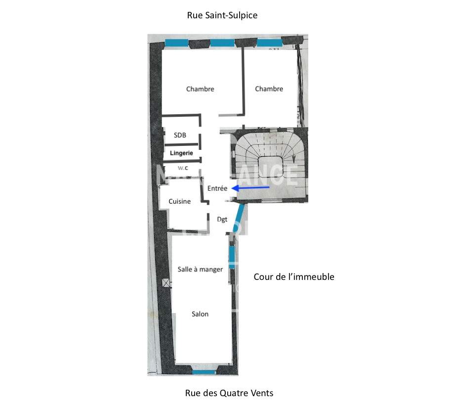 Cet appartement de 72m2 bénéficiant d’une belle hauteur sous plafond est composé de: