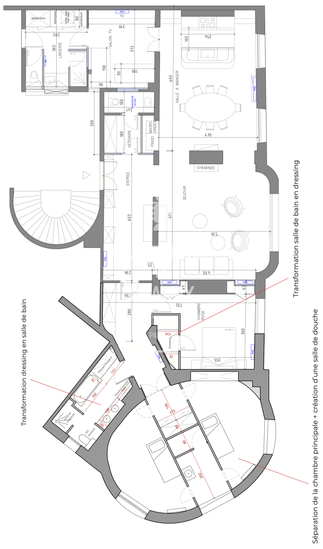 Possibilité de transformation en 3 chambres (plan ci-joint, budget 70 000 €)