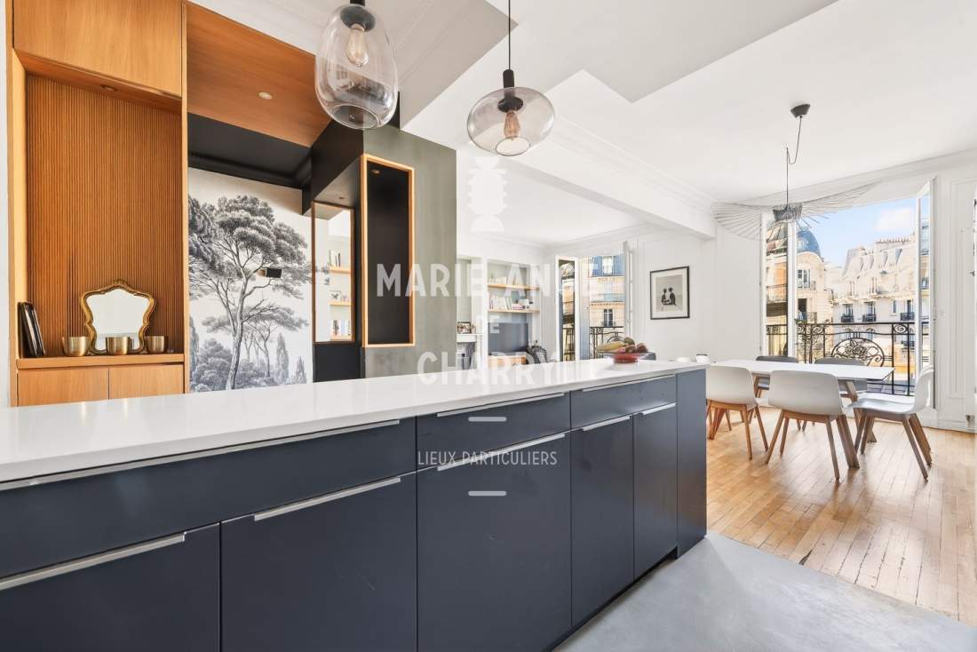 – Grand espace de 50m2 offrant une jolie vue dégagée comprenant salon avec cheminée / salle à manger et cuisine,