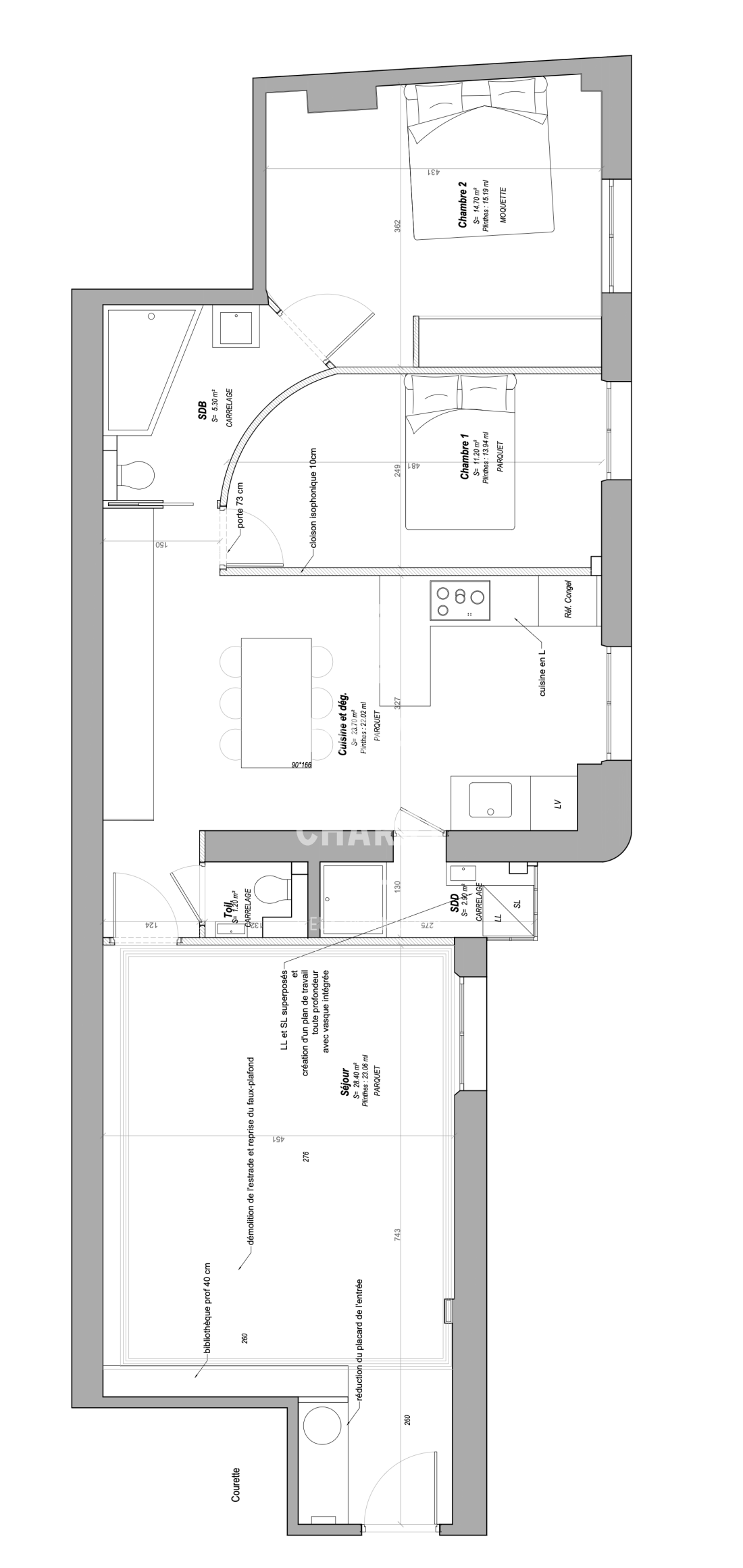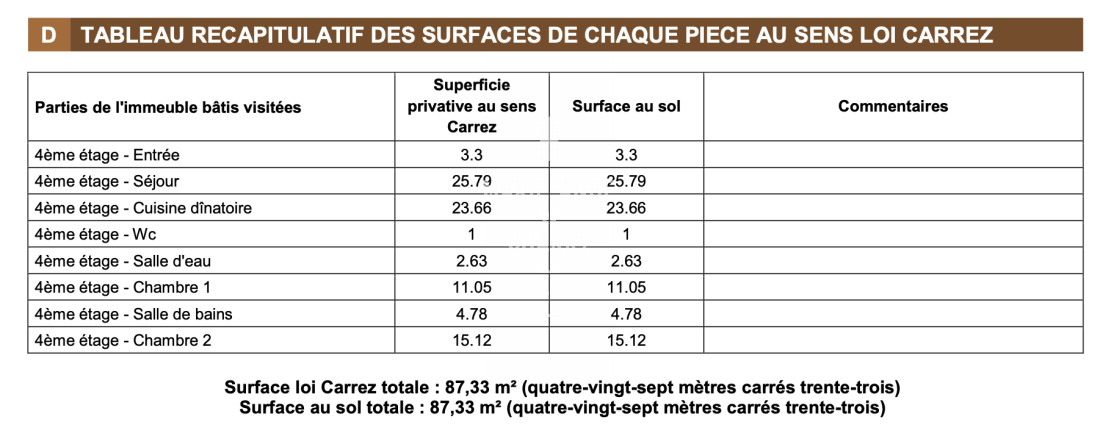 Cet appartement plein Sud de 87,33m2 Loi Carrez parfaitement au calme est composé de :