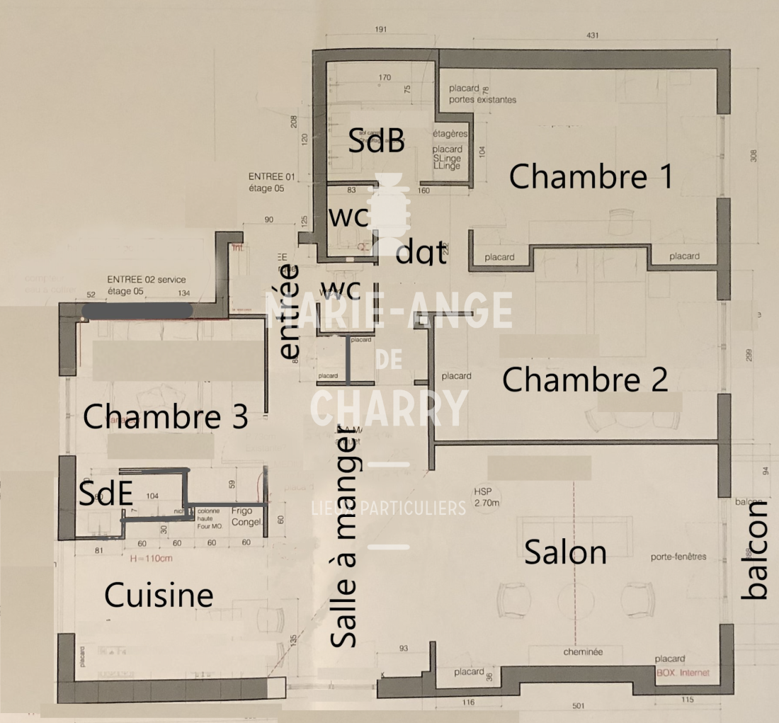 Au 5ème étage, cet appartement traversant en parfait état est composé de :