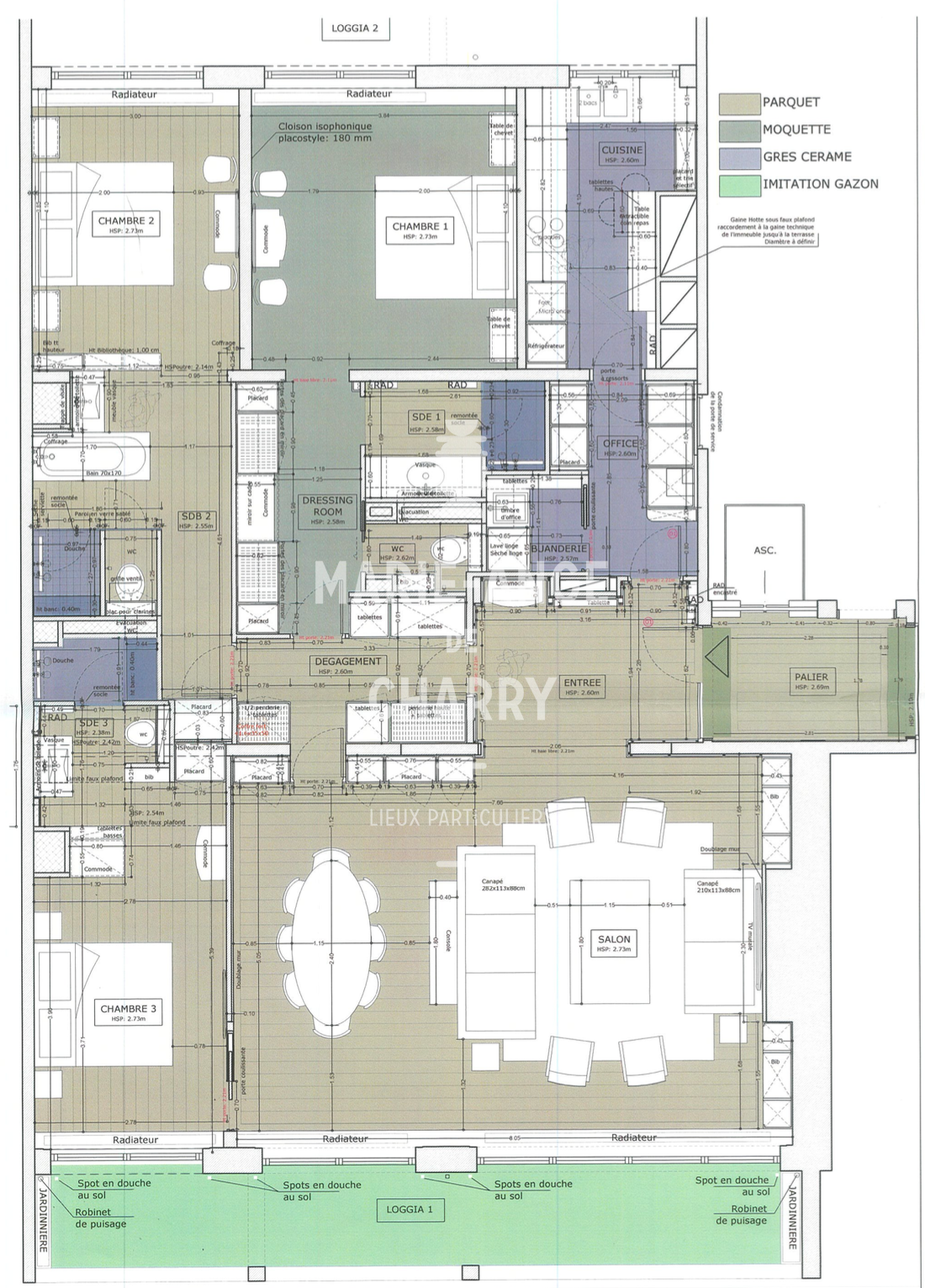 Double réception – 3 chambres – 3 bains – Balcons – Service – Parkings