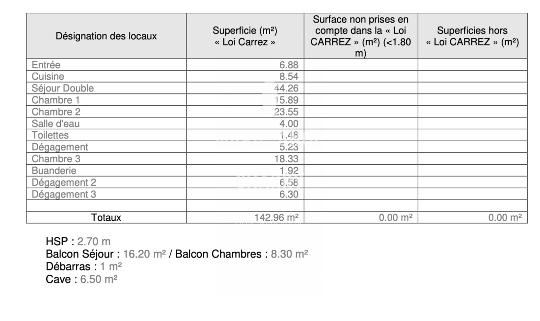 Surface Carrez : 142.96m²