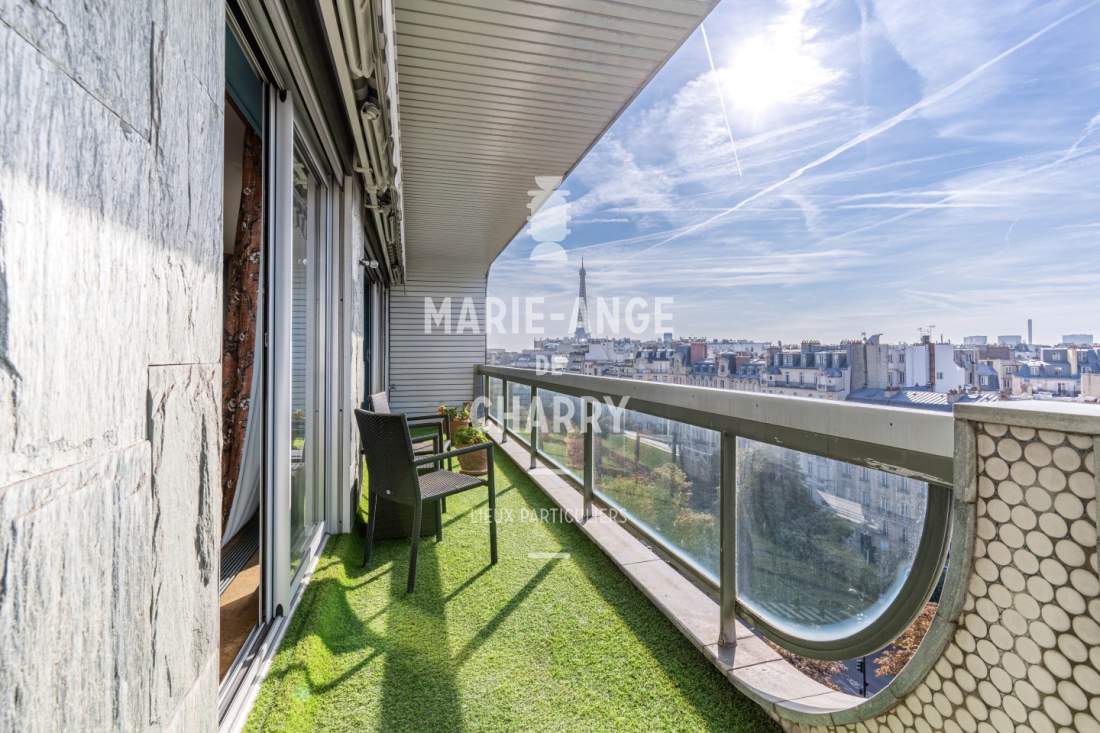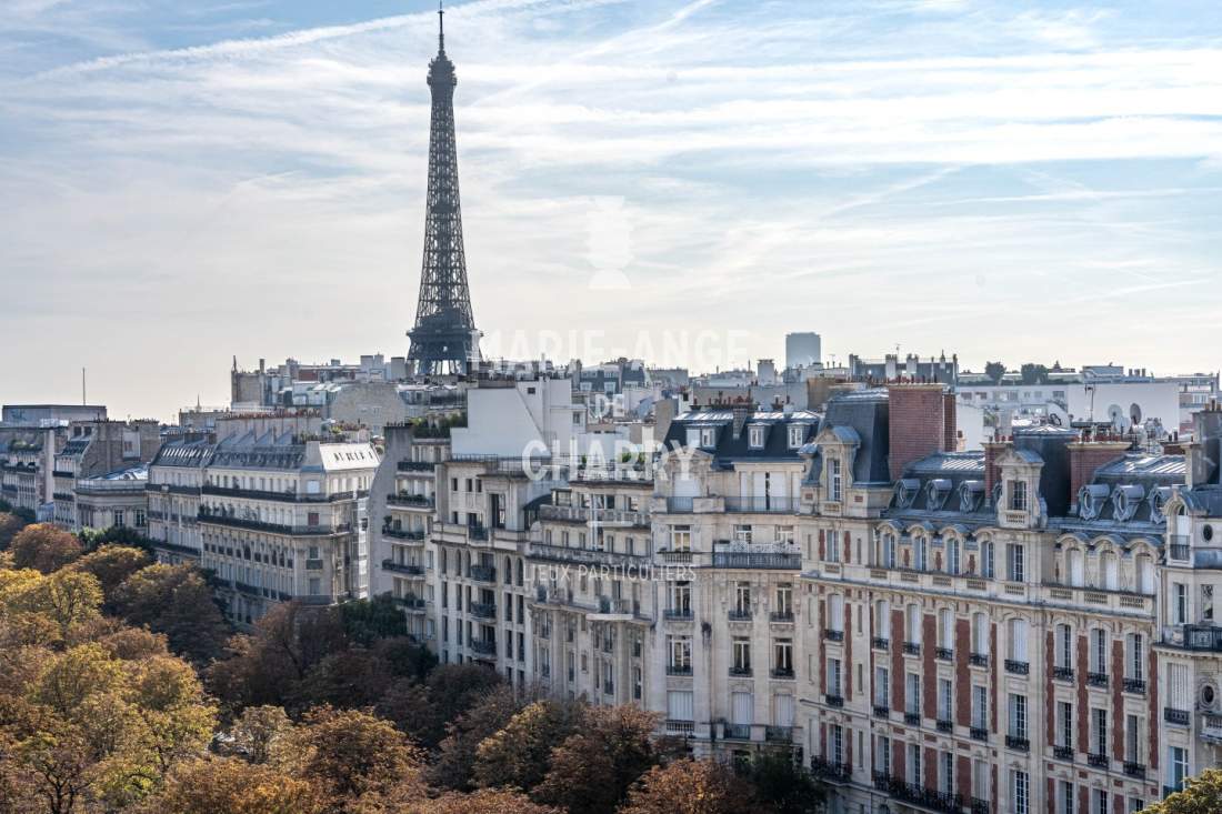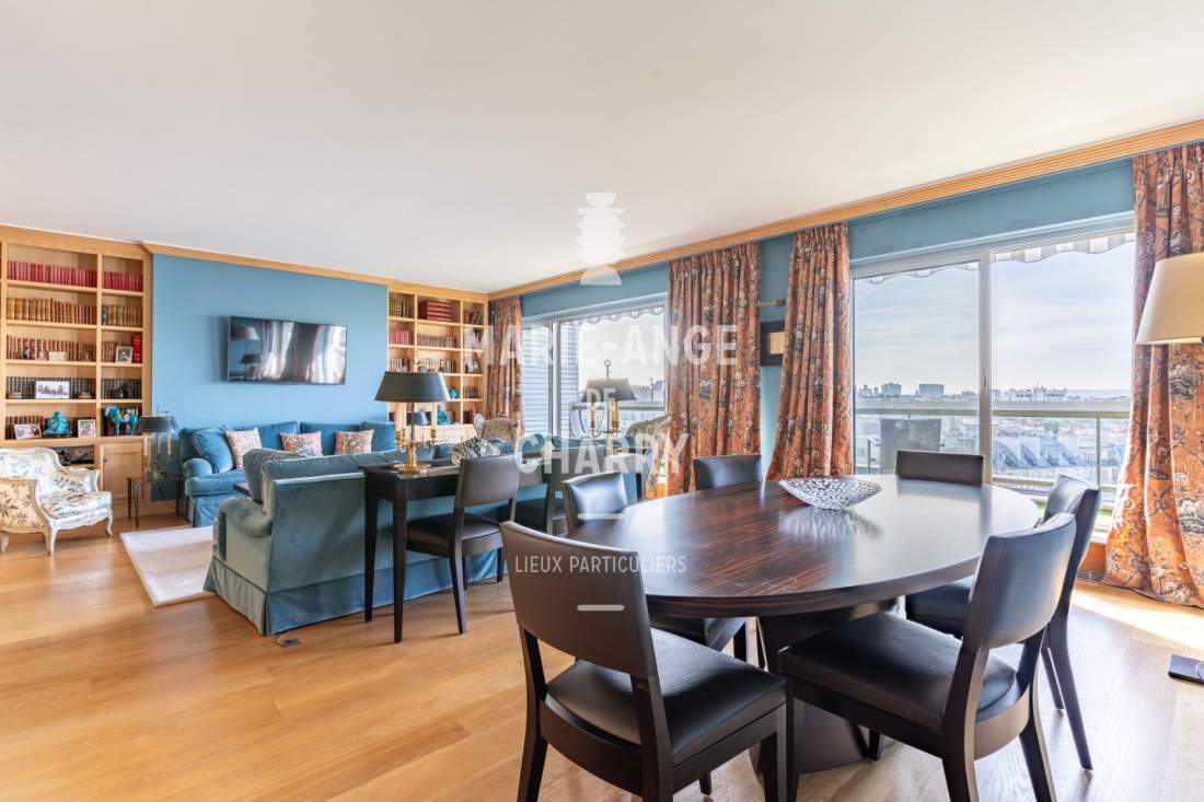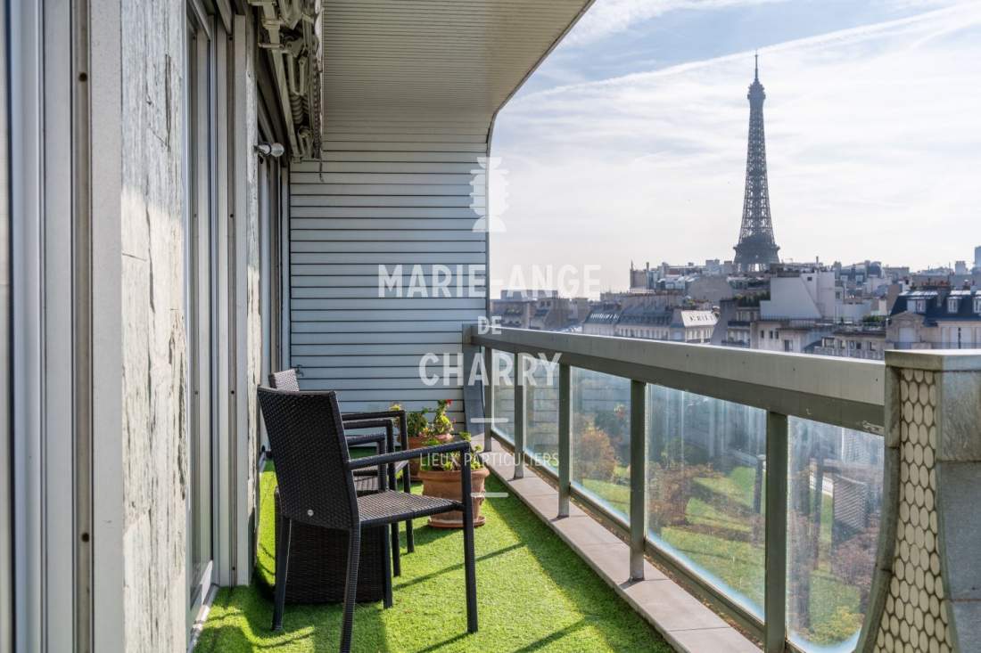 – Salon / salle à manger de 44m2 ouvrant sur un balcon terrasse de 16m2 offrant une vue dégagée sans vis à vis avec vue Tour Eiffel,