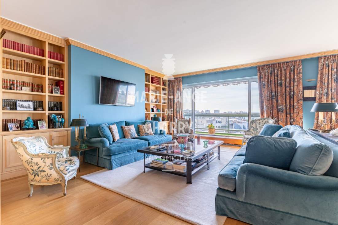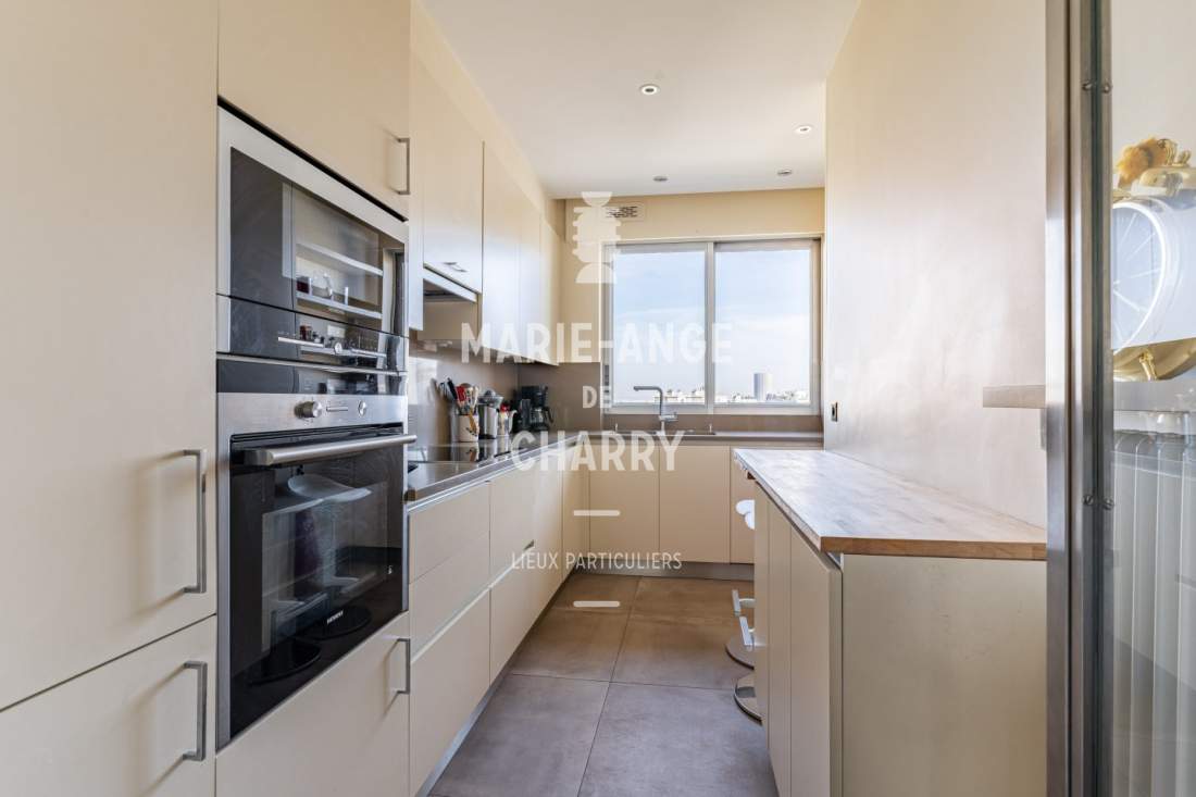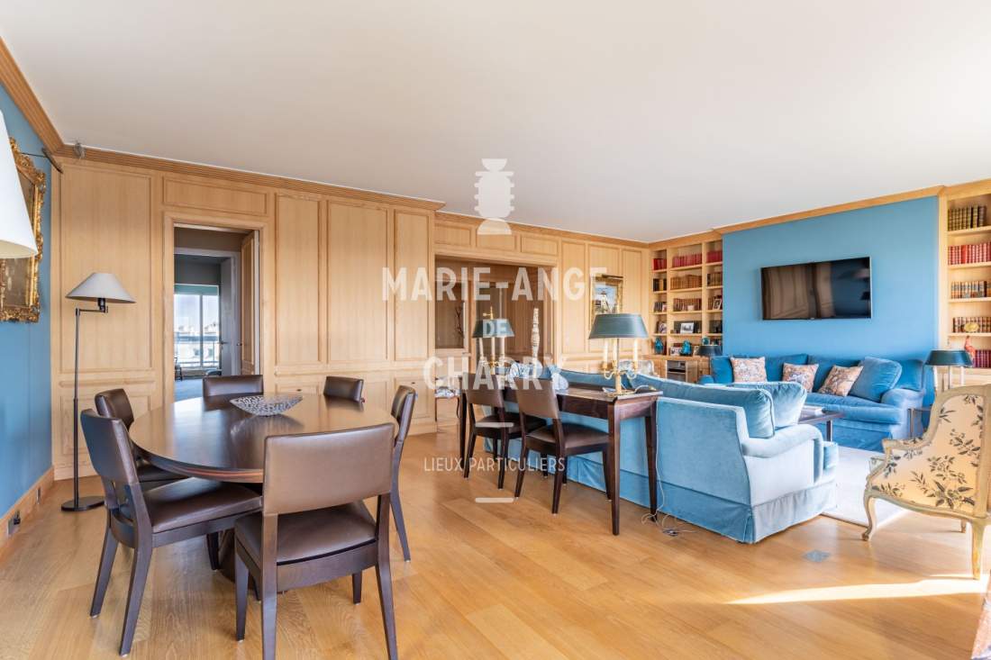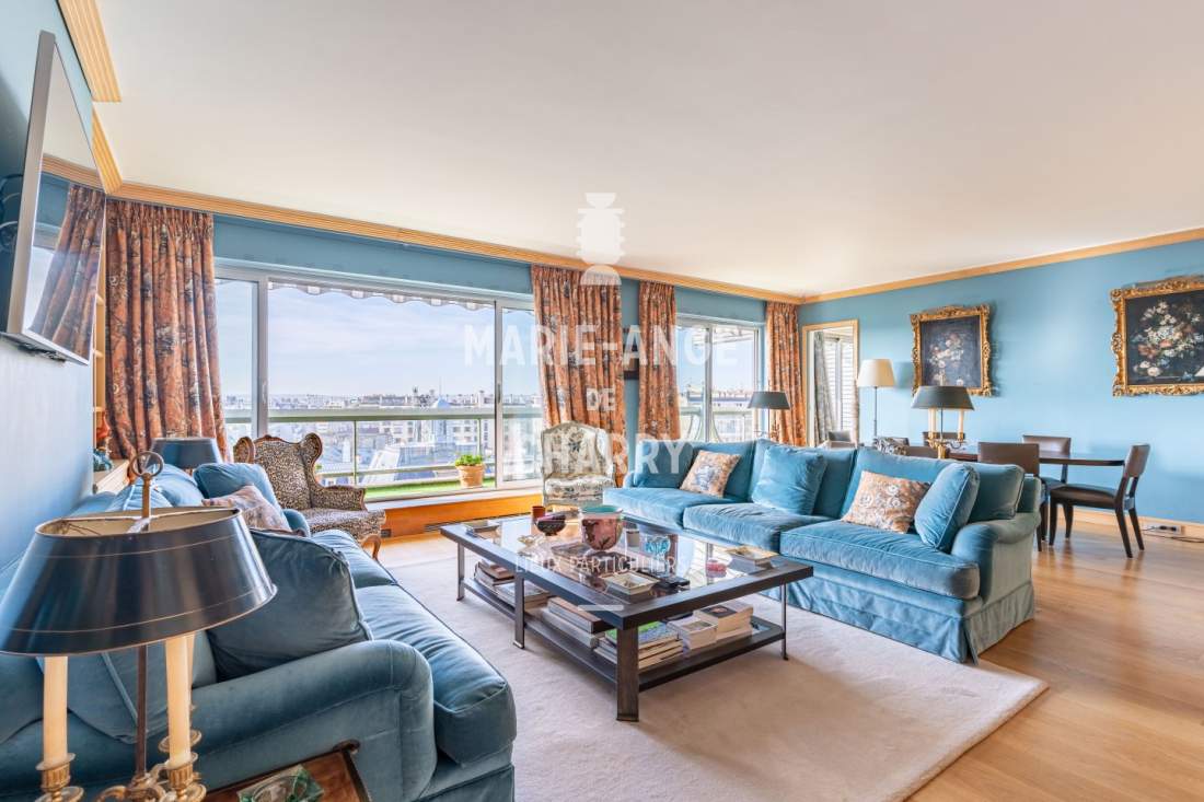 – Salon / salle à manger de 44m2 ouvrant sur un balcon terrasse de 16m2 offrant une vue dégagée sans vis à vis avec vue Tour Eiffel,