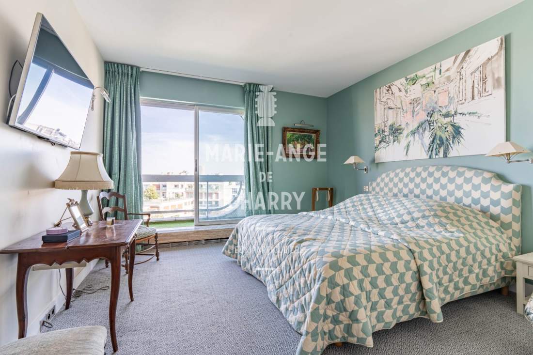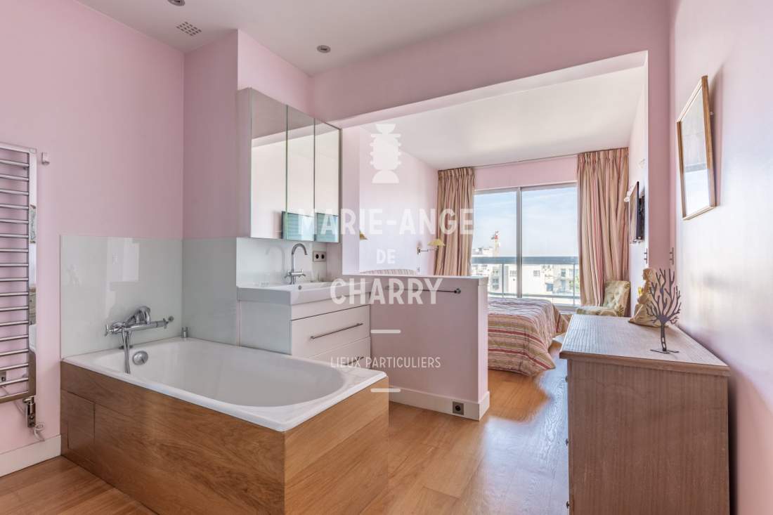 – Chambre principale de 24m2 avec sa salle de bains ouvrant sur balcon,