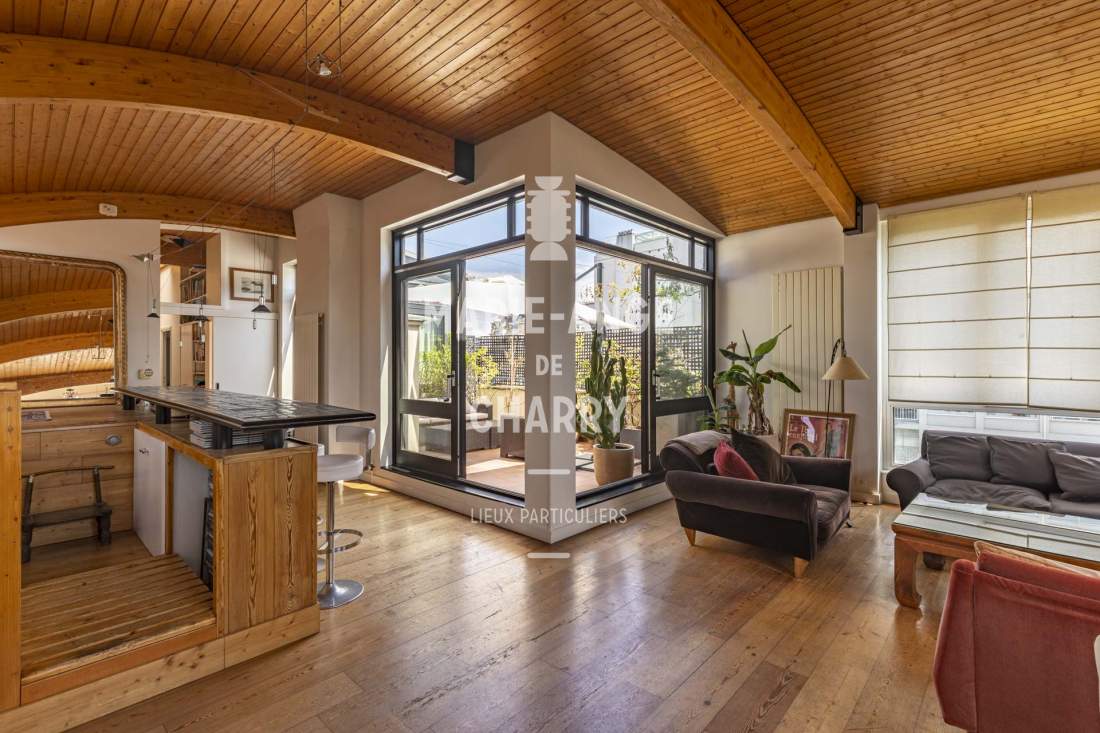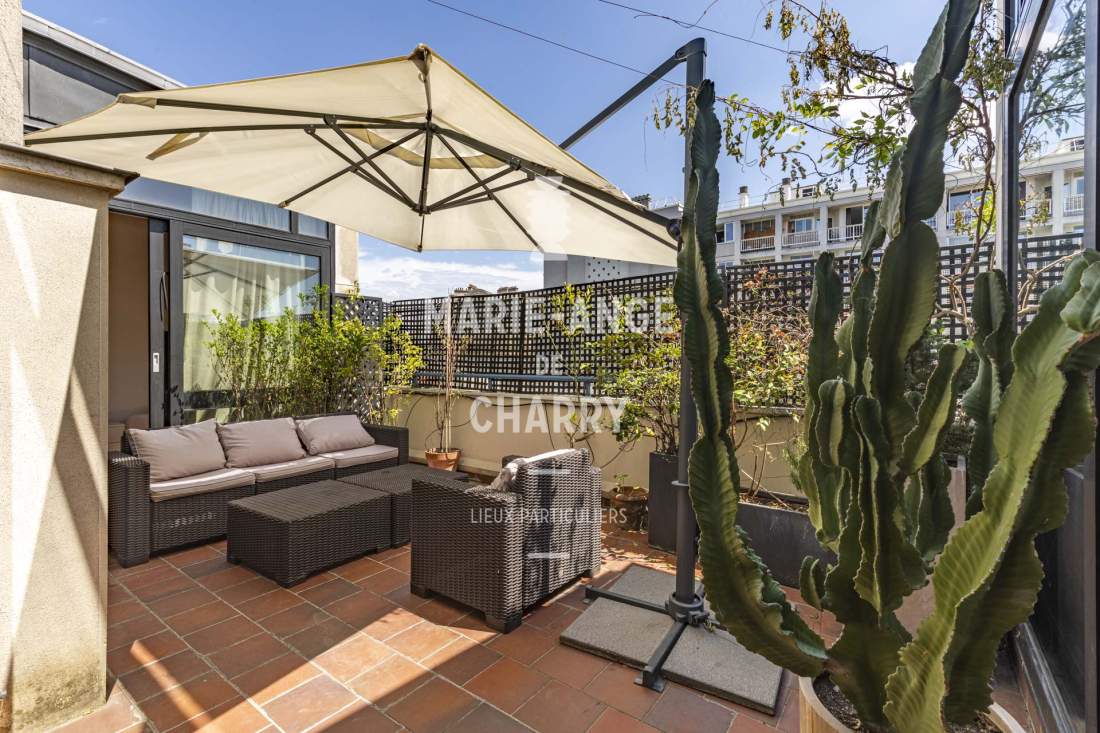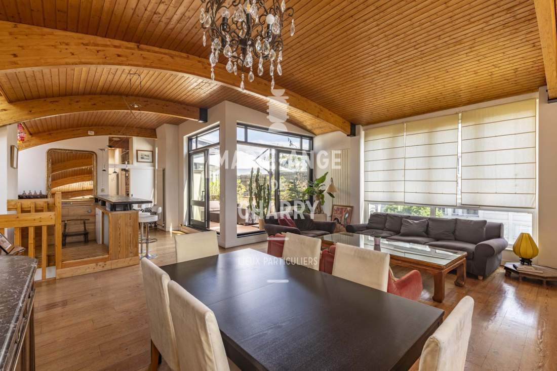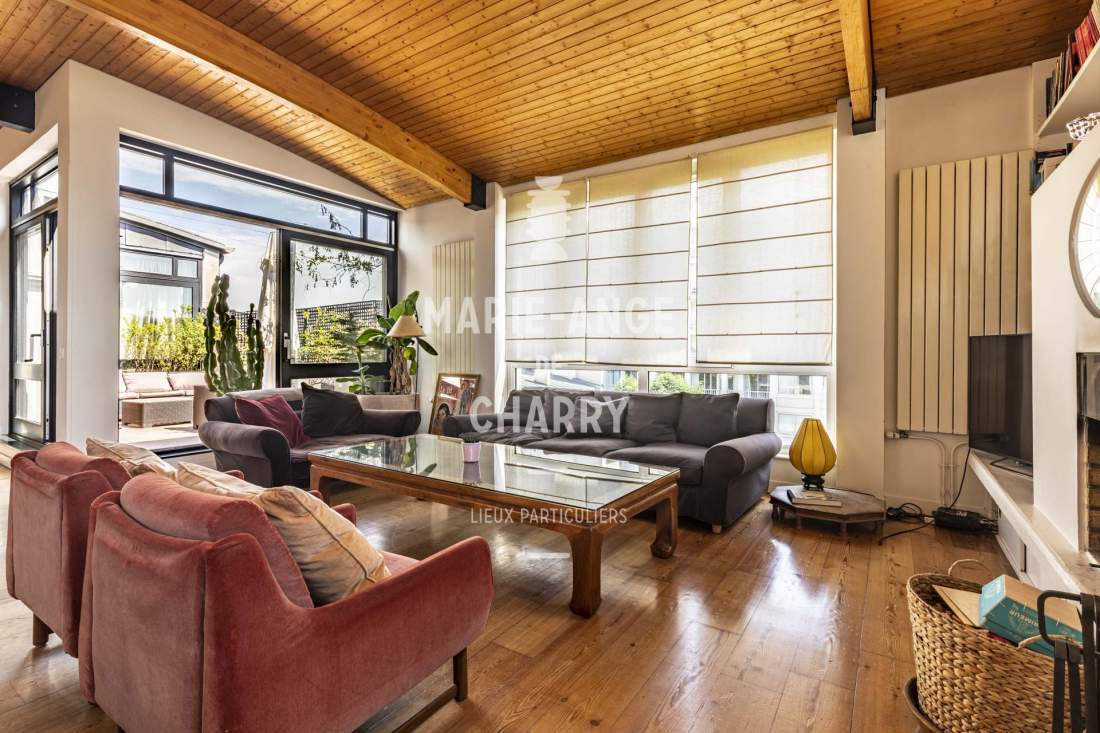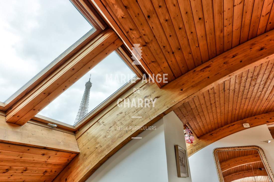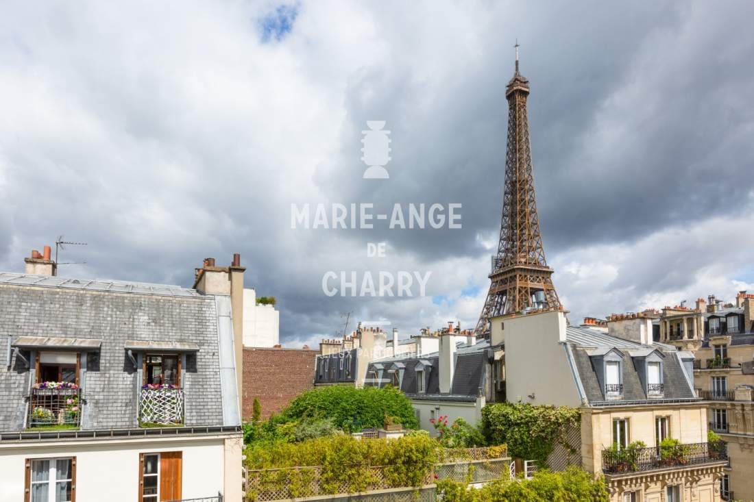 – Magnifique réception traversante de 55 m2 avec vue Tour Eiffel bénéficiant d’une hauteur sous plafond de 3m30 et ouvrant sur la terrasse de 20m2 exposée Sud,