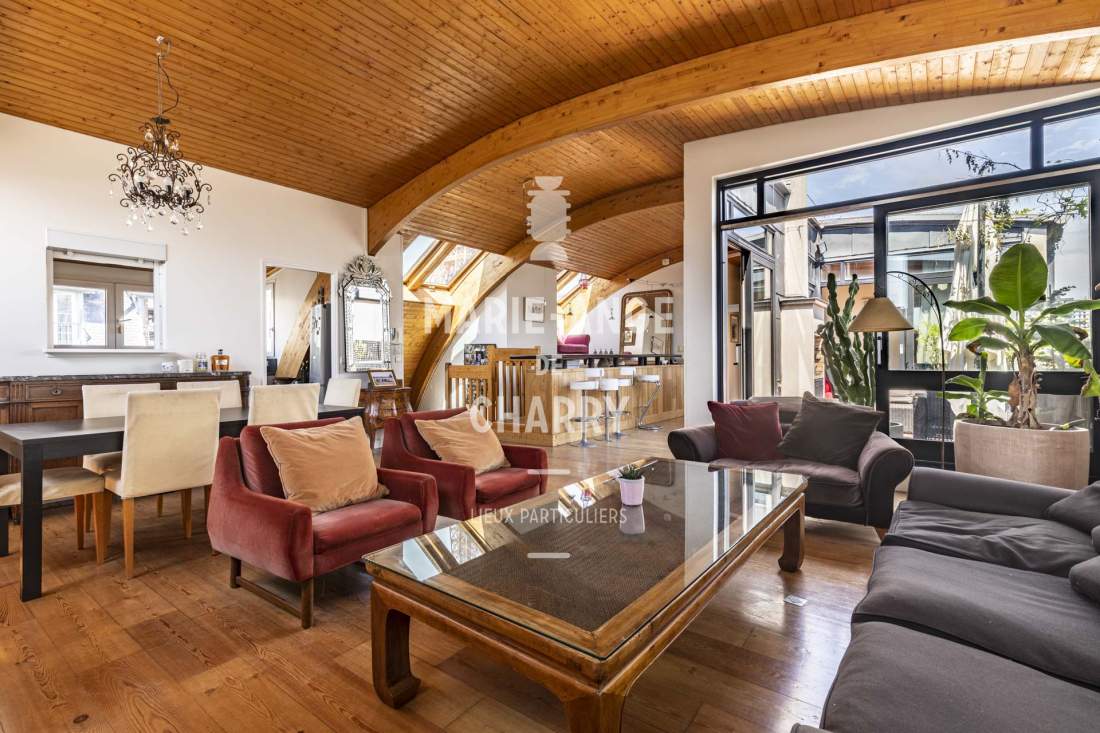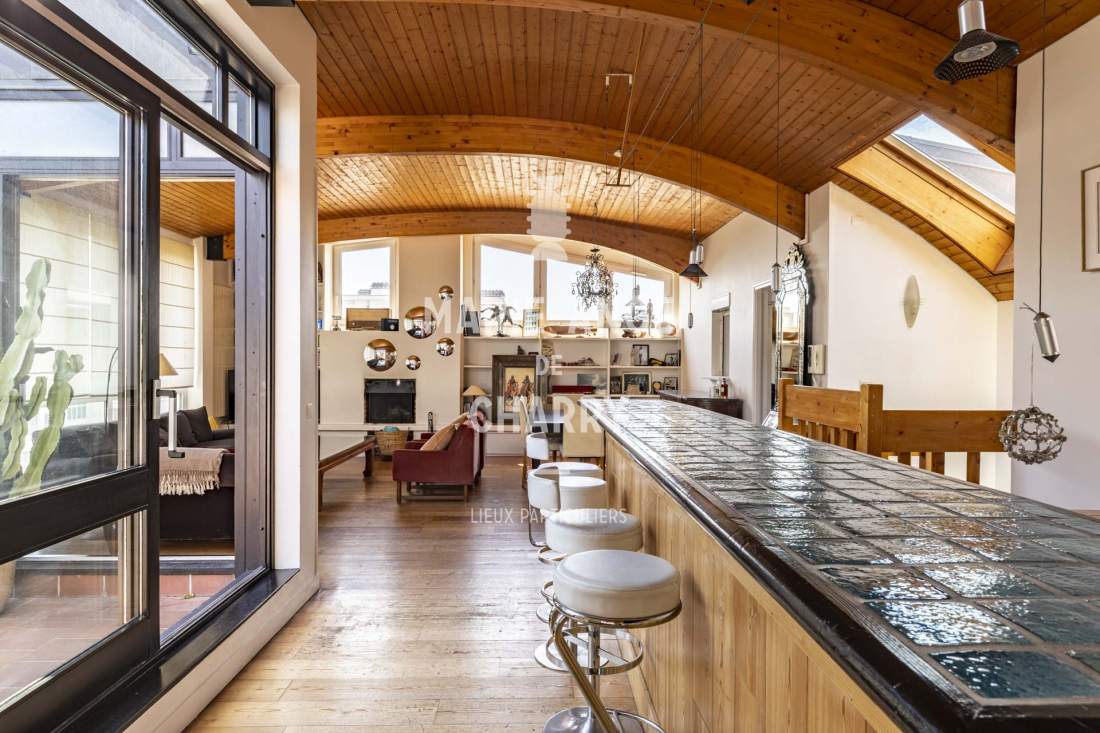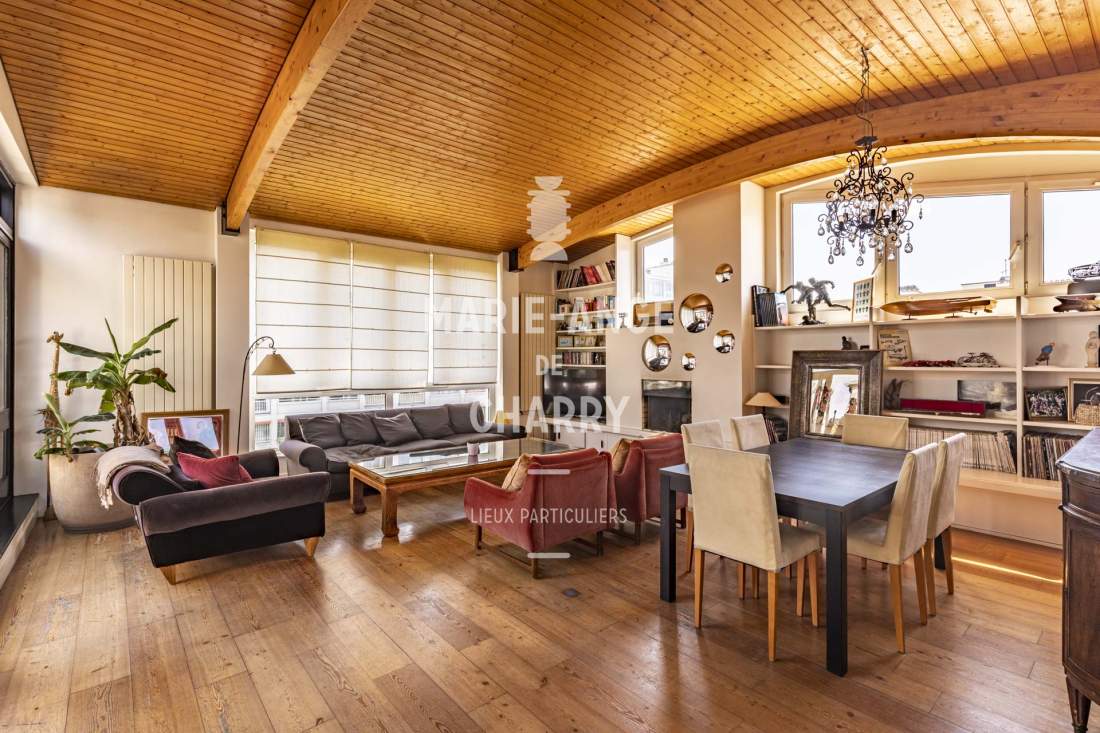 Aux 5ème et 6ème (dernier étage) cet appartement traversant de 182m2 au sol (164,37m2 Loi Carrez) bénéficiant de beaux volumes est composé de :