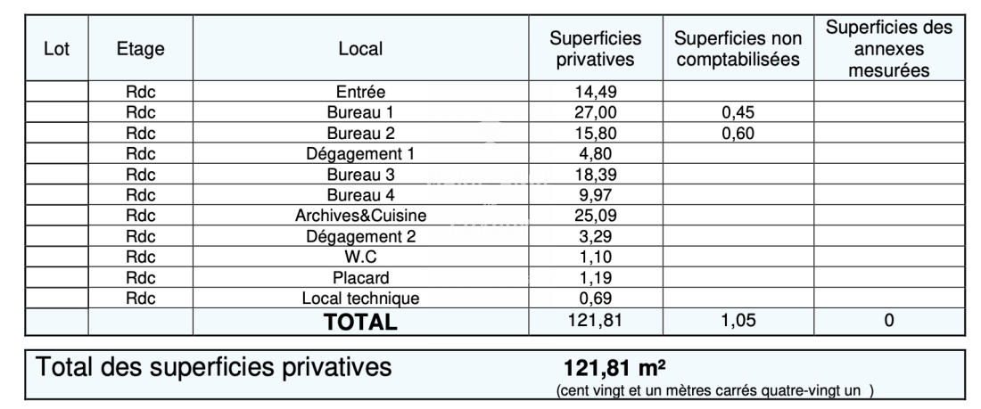 Surface Carrez : 121.81m²