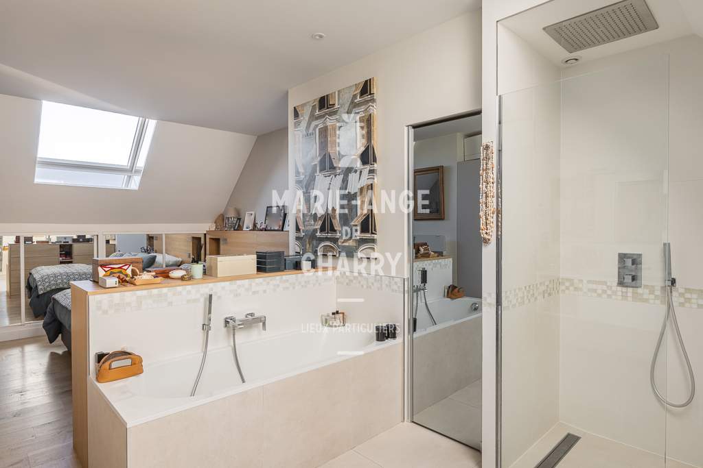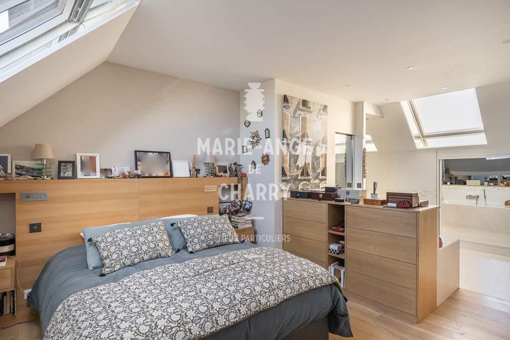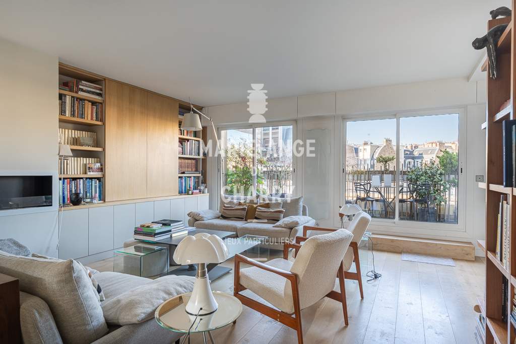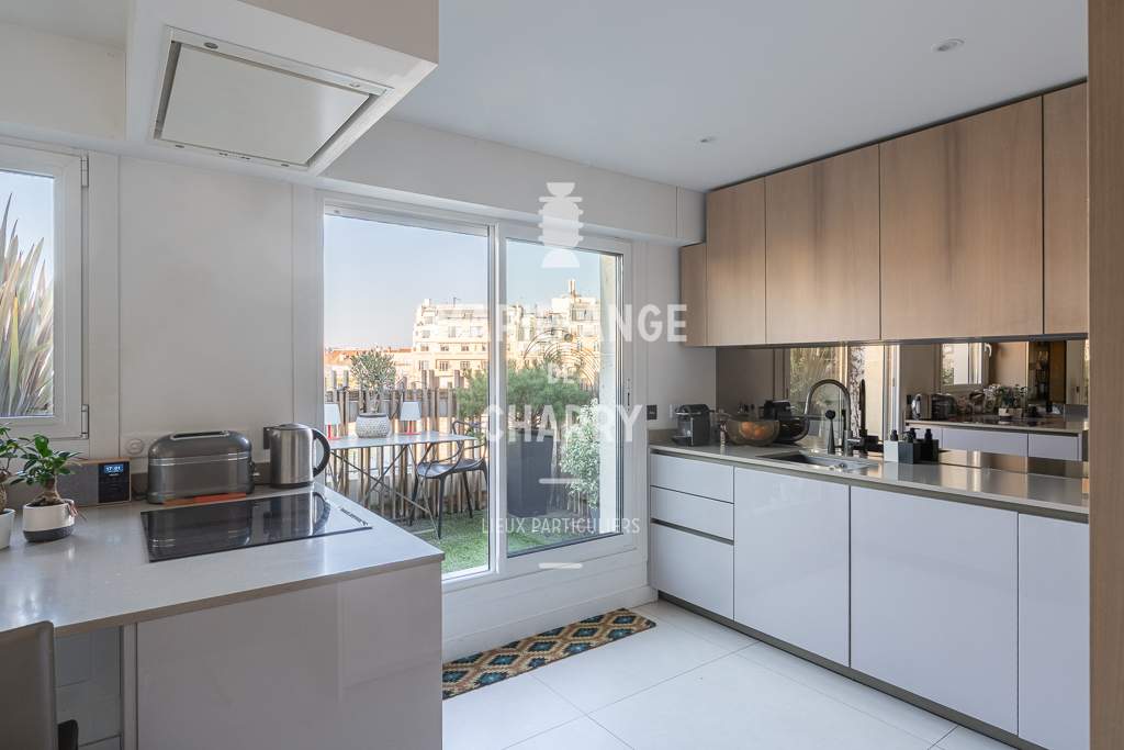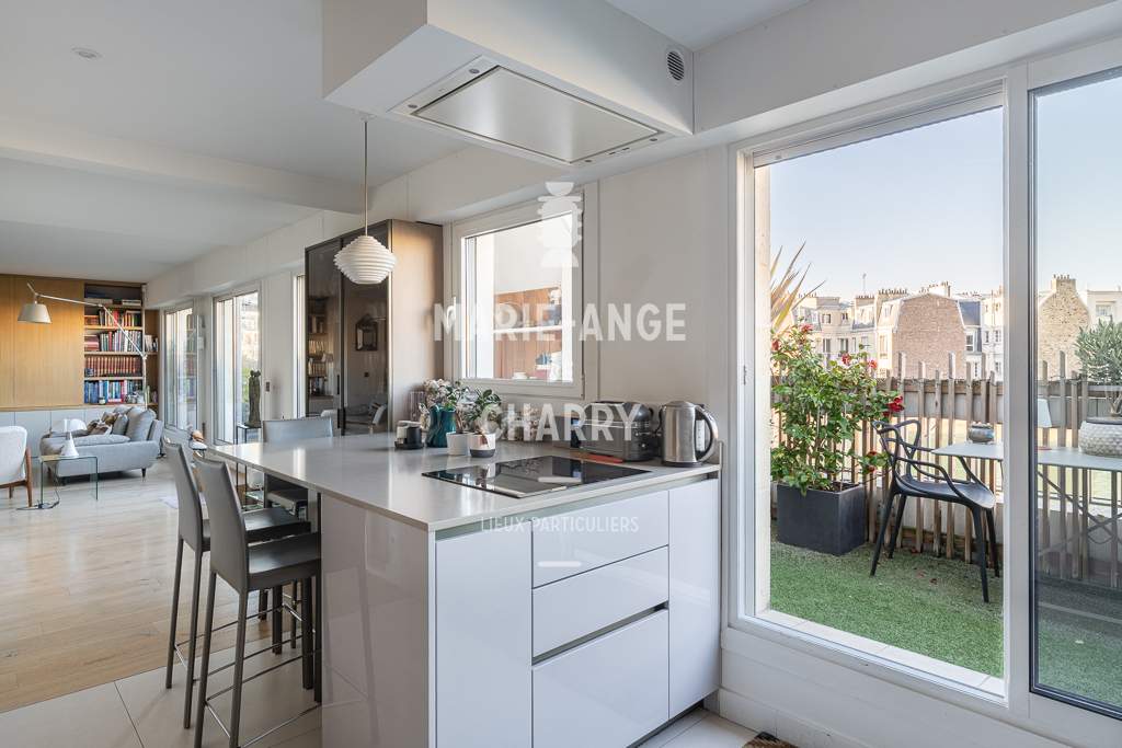 – Grand espace de 80m2 comprend salon / salle à manger et cuisine ouvrant sur la terrasse de 21m2 avec vue sans vis à vis sur le réservoir de Passy,