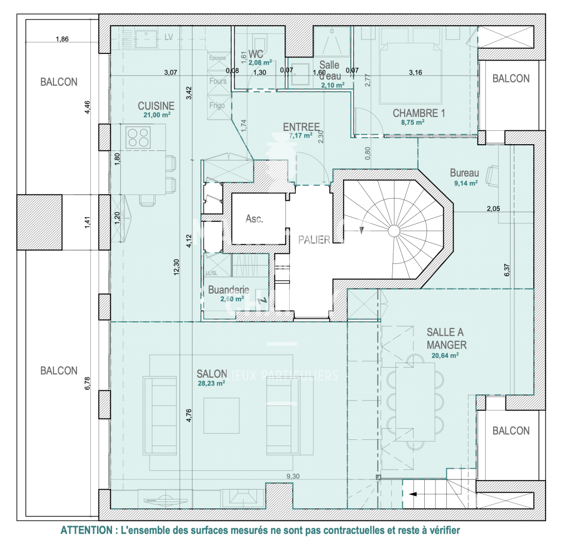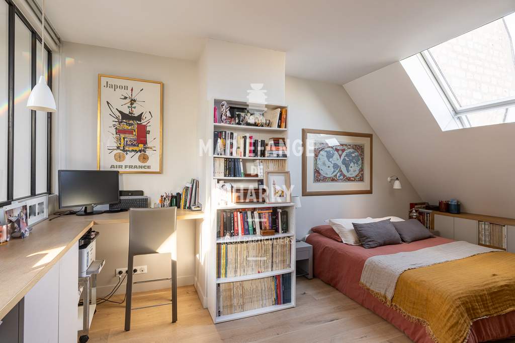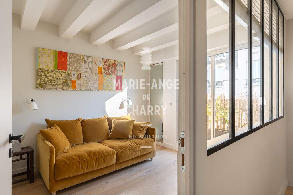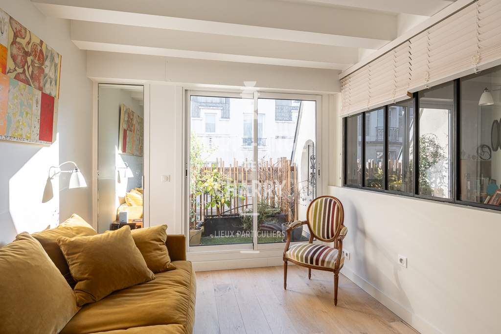 – Grand espace de 80m2 comprend salon / salle à manger et cuisine ouvrant sur la terrasse de 21m2 avec vue sans vis à vis sur le réservoir de Passy,
