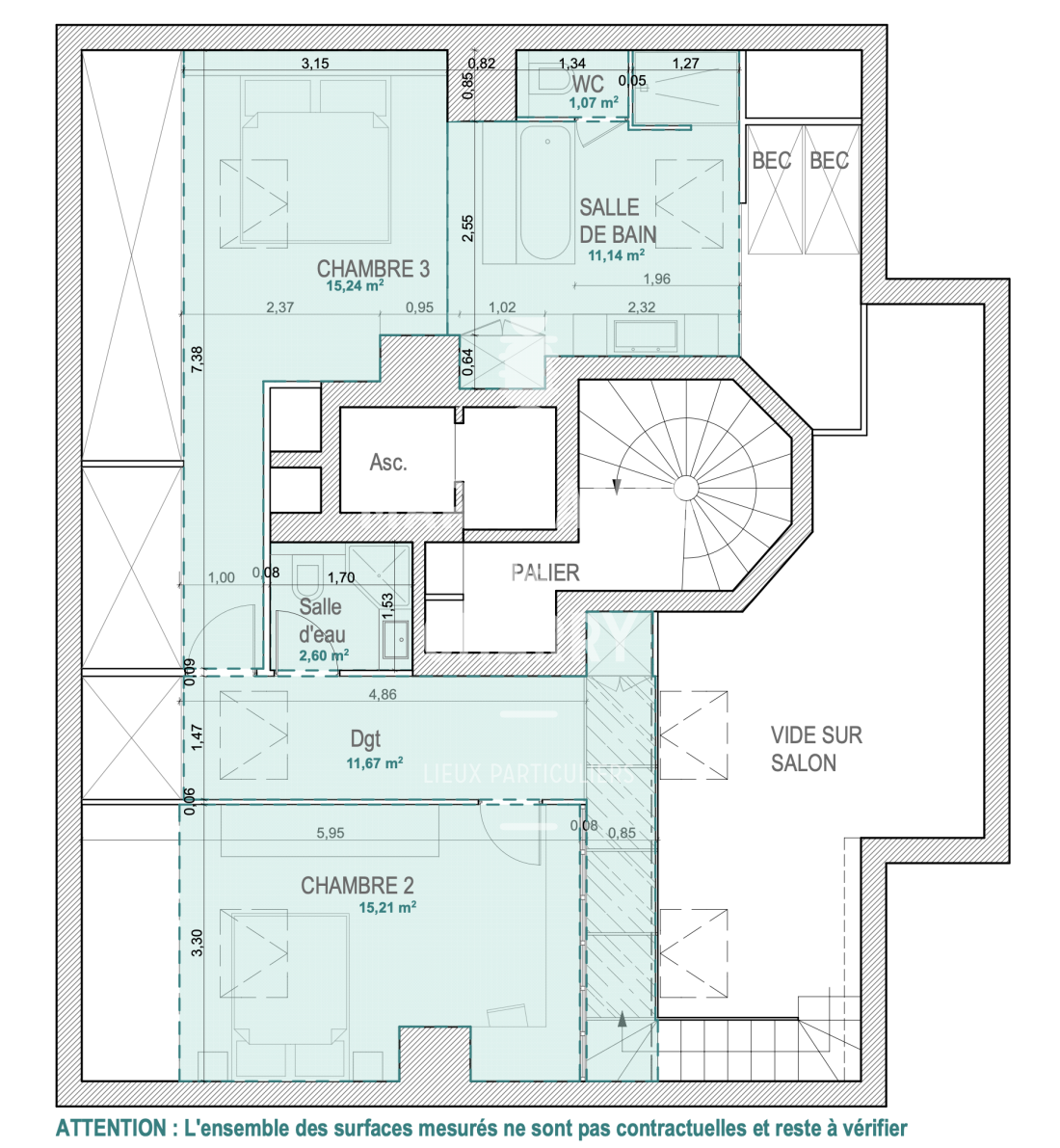 – Espace parentale de 23m2 avec salle de bains et toilettes,