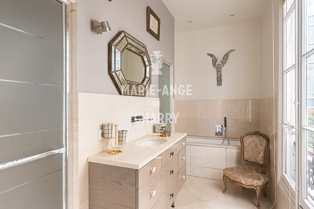 Cet élégant appartement de grand charme de 155m2 au sol (151m2 Loi Carrez) en parfait état est composé de :