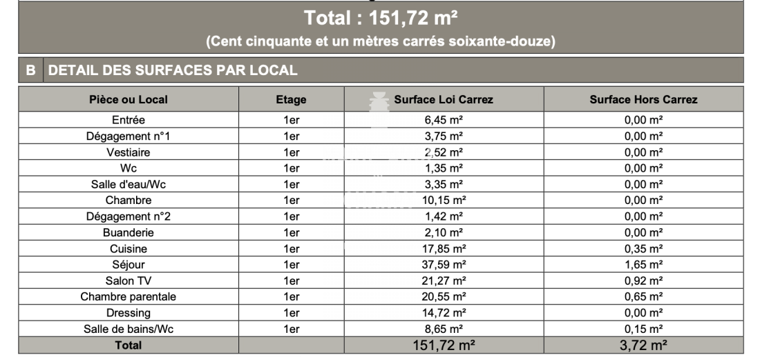 Surface Carrez : 151.72m²