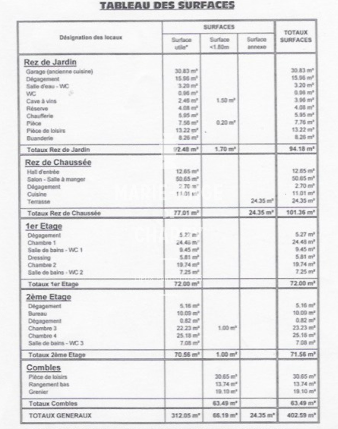 Surface au sol : 312m²
