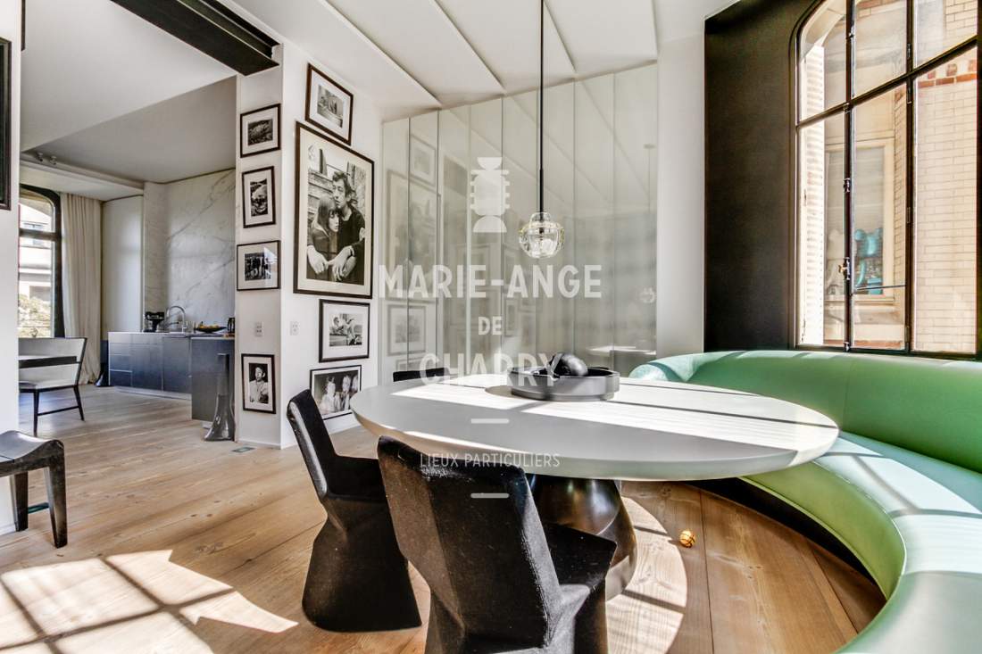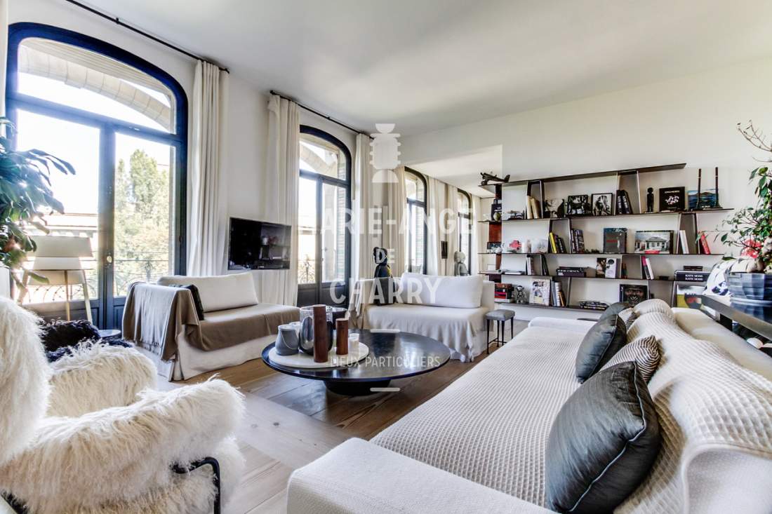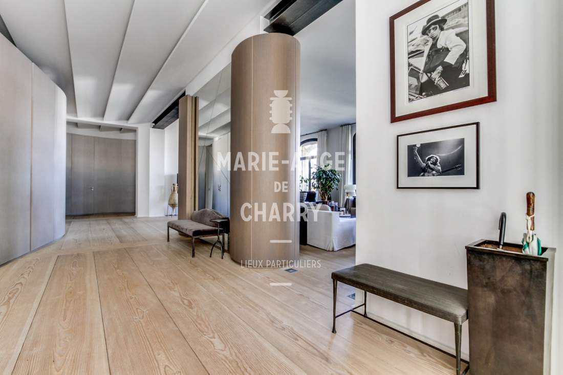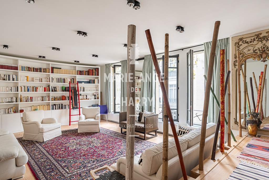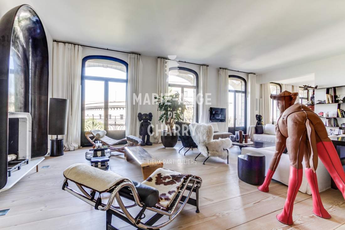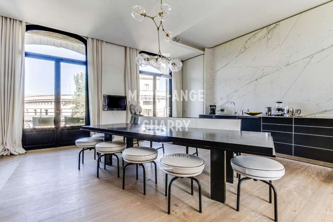 Dans une voie privée sécurisée, au 4ème étage d’un rare immeuble art Déco, exceptionnel appartement contemporain de plain pied de 446m2 ouvrant sur un balcon filant, offrant des vues sur la Seine, La Tour Eiffel et le Trocadero et bénéficiant de magnifiques volumes et de 3,60m de hauteur sous plafond.