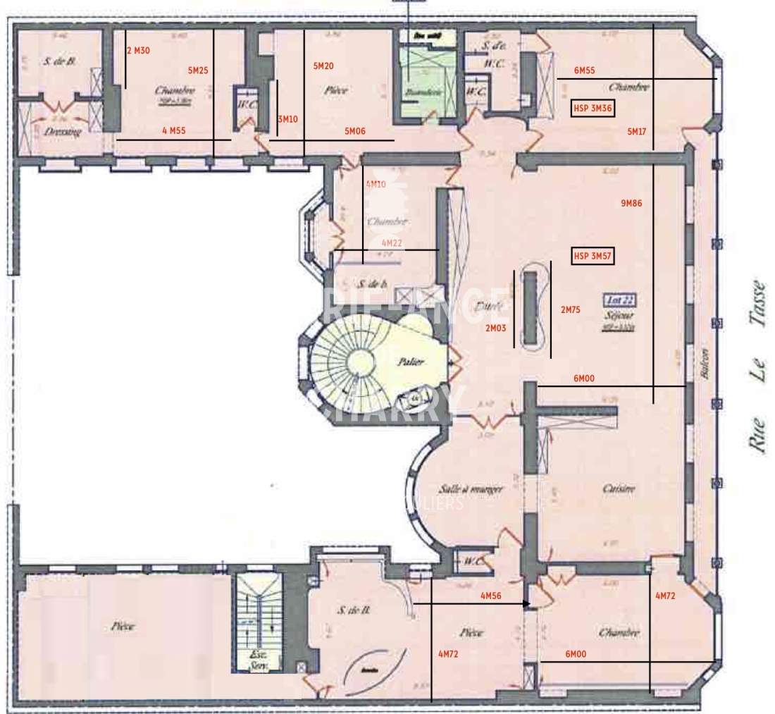 – Chambre de 30m2 sur la façade avec salle de bains et dressing,