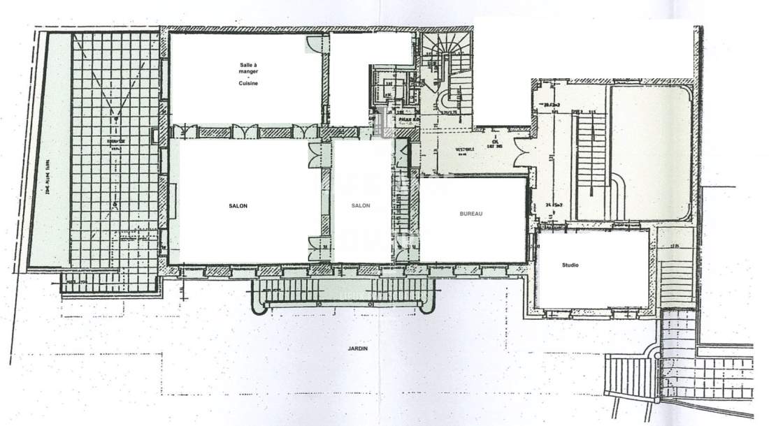 Un studio de 23,20m2 (compris dans les 367m2) attenant au bureau du rez de chaussée, une cave et deux places de parkings au sous-sol complètent ce bien (accès par ascenseur direct).