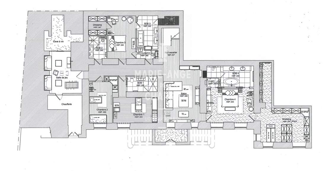 – Chambre de 21m2 avec sa salle de bains et dressing de 27m2,