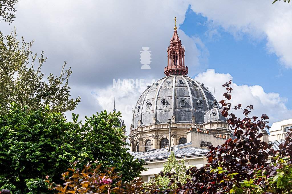 – Salon de 54m2 bénéficiant de 5 fenêtres plein soleil avec vue directe sur le dôme de St Augustin et son sublime jardin. Accès à une terrasse de 97m2.