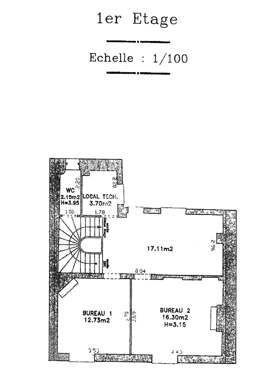 Au 1er étage bénéficiant d’une hauteur sous plafond de 3m15: