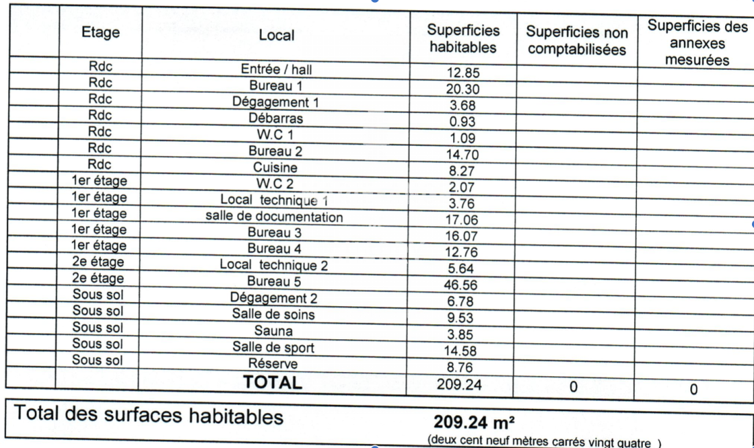 Surface au sol : 209m²