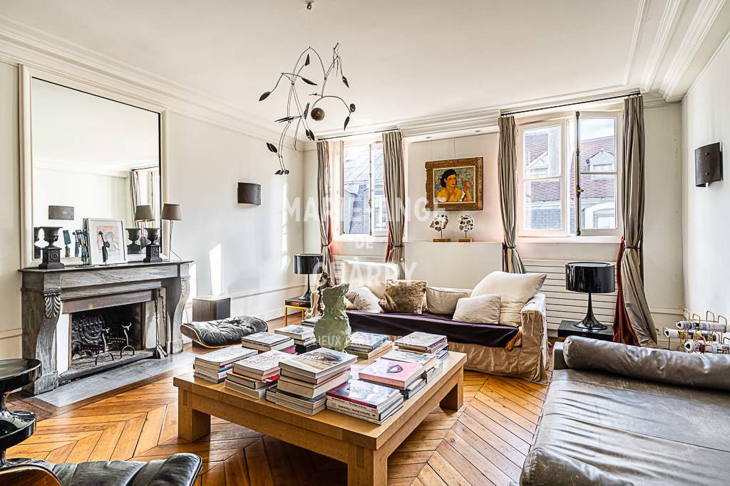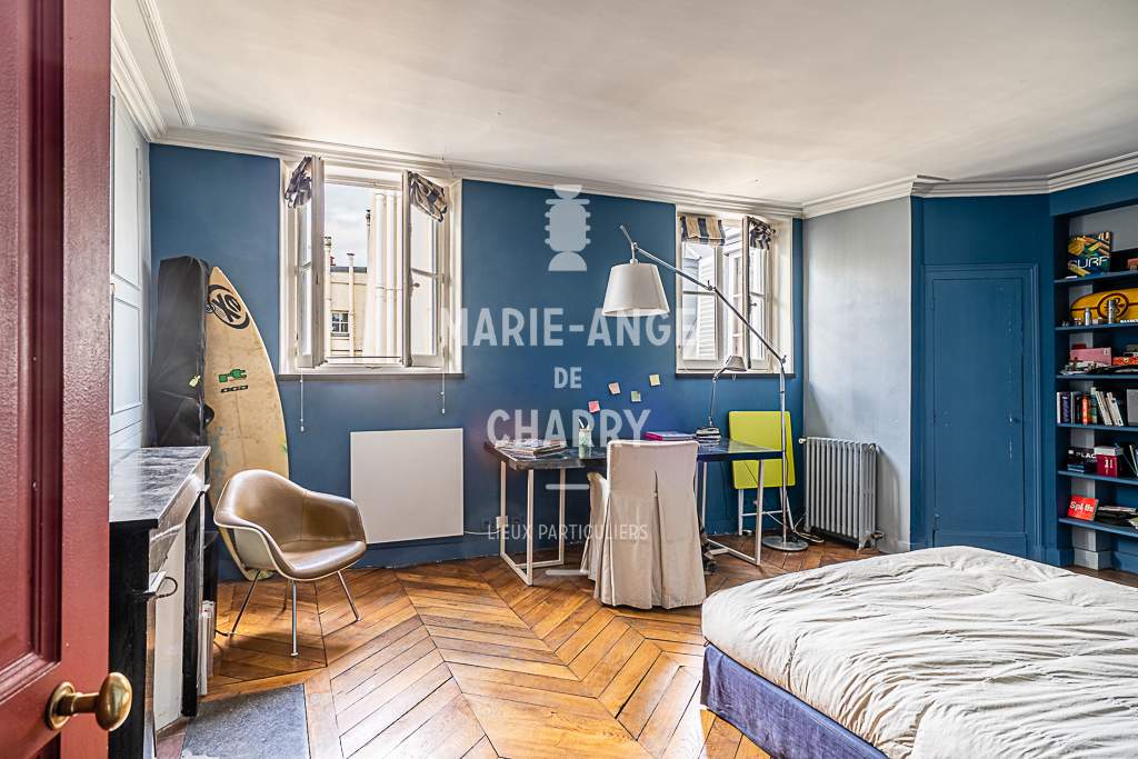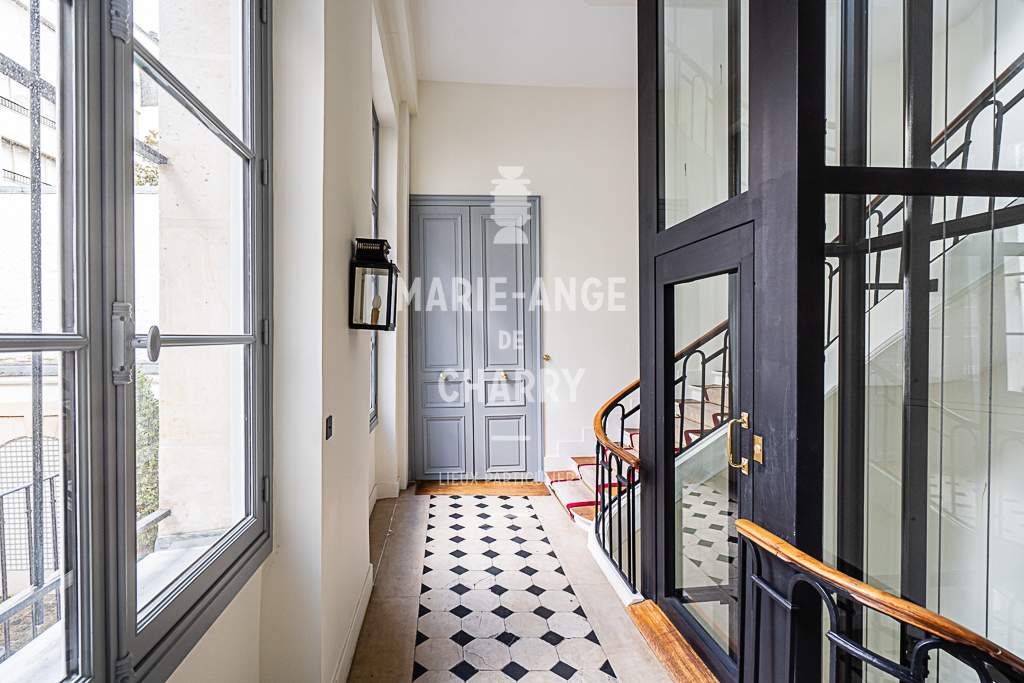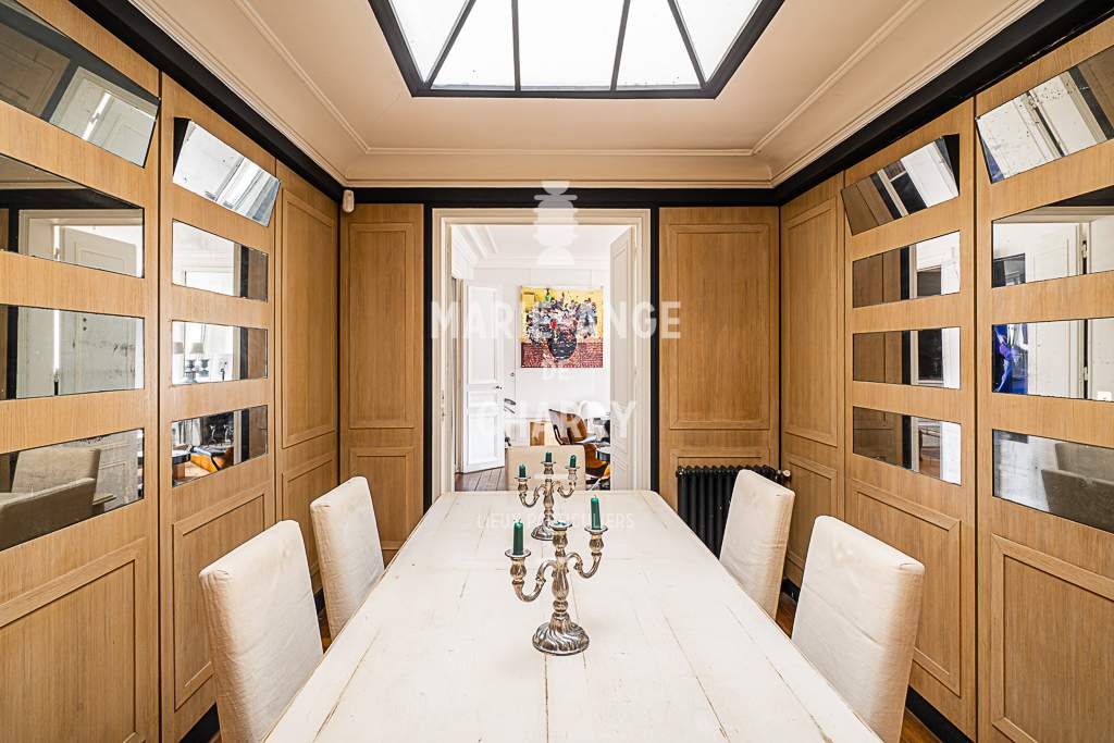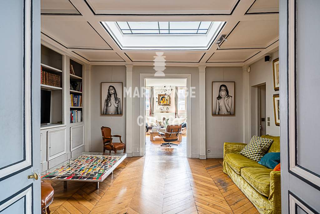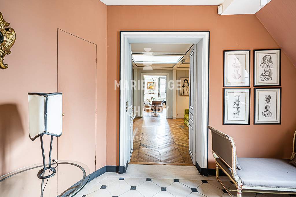 Dans un très bel immeuble XVIIIème, cet appartement en dernier étage – 3ème étage (ascenseur jusqu’au 2ème) de 216m2 au sol (210m2 Loi Carrez)bénéficiant d’un très bon plan est composé de :