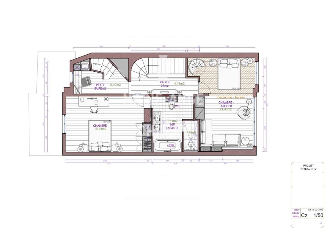 – Chambre de 21m2 avec sa mezzanine de 7m2,